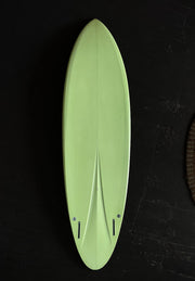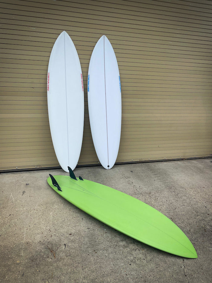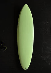 As larger designs like the FM shrink, I try to re-design towards the strengths of a board’s actual size vs. scaling something just to keep it’s namesake - At 6’6” this FM is much sleeker in outline and tuned up for back-foot surfing. The spiral-vee is slid back and runs a little bit out the tail, so it’ll keep more planing speed off the front foot and sit deeper in the pocket, working more vertically than it’s larger counterparts. If you’re coming from a shortboard background or are starting to push your 6’9 FM into some hairy situations and want even more out of the board; This is the one.