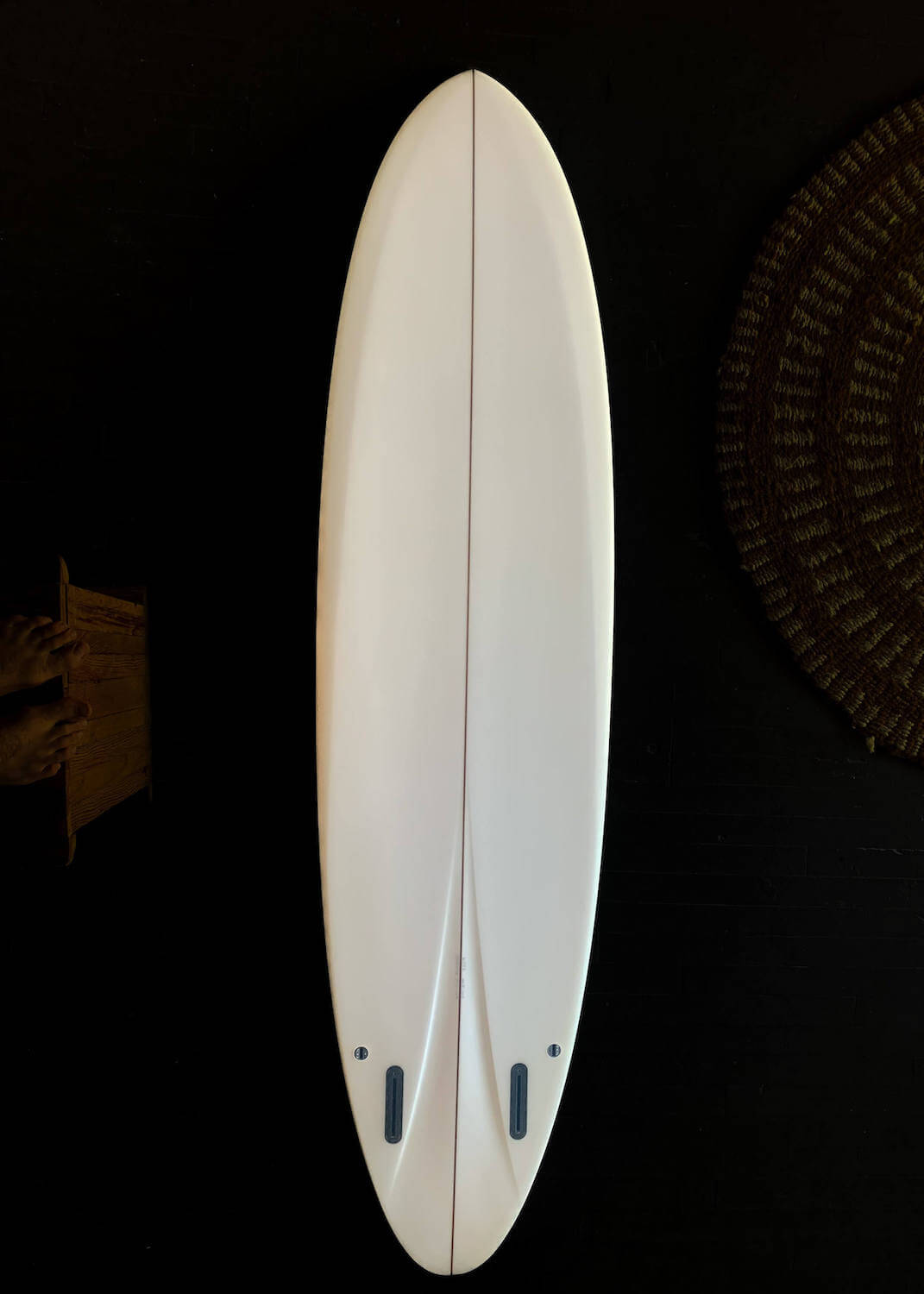 The first FM that REALLY clicked was a 7’8 - the first trial being 8’6 and with a clunky nose outline. Once it was realized how capable the general theory was, the length shrank a foot and the nose was sleeked out - everything fell into place in the first sessions and the FM was born. Its only natural we should offer the design at that length; super well balanced and tuned for average to fun waves, with a pension for being put on rail and pushed hard like any other FM, this version will cover a lot of ground for many people. Most surfers tend to imagine smaller versions when they see an image of the design at first, but the point behind the entire design and what makes it so unique underfoot, is its ability to be ridden large while feeling MUCH smaller. All of the engineering behind the board is aimed at making large dimensions go on rail with power and positivity with very little effort; so don’t be afraid of a little more size than you think!