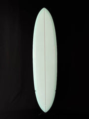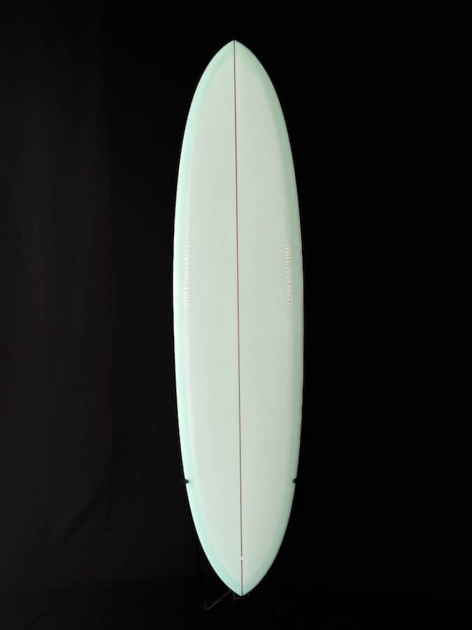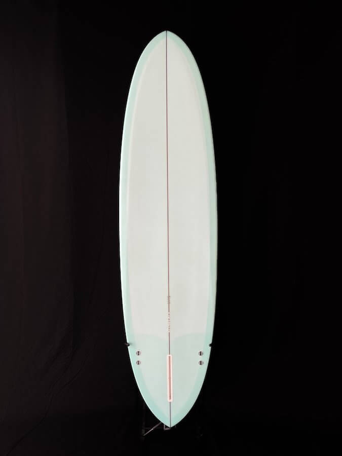 Without a doubt the most ordered custom size ThickLizzy - the 7’4 is compact enough to travel, and packs enough glide to keep you in the water on even the smallest of days. We’ve found the 7’4 to be SUPREMELY sharable; it bridges the gap as a medium-to-good-wave midlength for the dudes, or a small to good-wave destroyer for the ladies. Ryan hauled one of these around the globe for three years straight on his shaping trips, “covering more ground in a single board than anything I’ve ever had.” or so he says. Compared to the 7’10, this smaller version sports a little more rocker in the front 1/3, as well as a turned up nose vs. the sleek ‘beak’ of the 7/10.